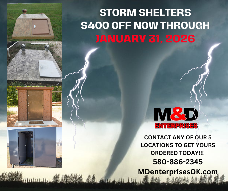 You deserve Unbeatable financing rates for your storm shelter purchase! Take Advantage of 3.9% APR for up to 60 Months from Tinker Federal Credit Union at M&D Today! We also offer Storm-Shelter financing from Communication Federal Credit Union as a great secondary option! Contact Us and get your family one step closer to safety while keeping that hard earned money in your pocket.